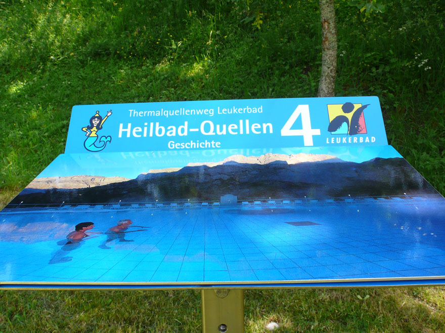 Rundweg in Leukerbad DorfDem Leukerbadner Gold auf den Grund gehen – der Themenweg führt durch das Dorf und zur dahinter gelegenen Dalaschlucht. Die Besucher entdecken acht Quellen und Quellengruppen, die zudem mittels Informationstafeln umfassend beschrieben werden.